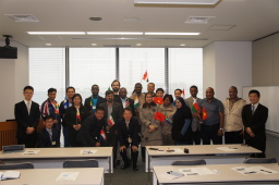 | JICA集団研修への協力 国総研ニュースレター 「世界16カ国からの港湾関係JICA研修員を受け入れ」(日本語版) News letter "JICA port and harbor trainees from 16 countries accepted by the NILIM" (English) ※写真は、「港湾戦略運営」の研修員(16カ国18名) |